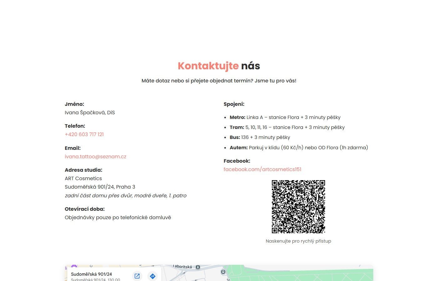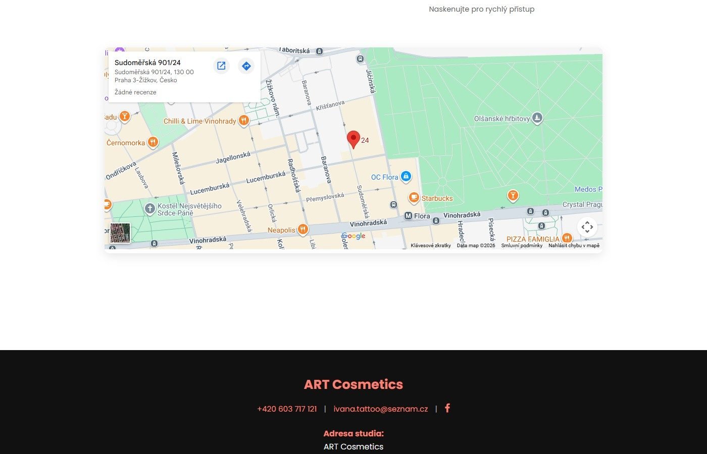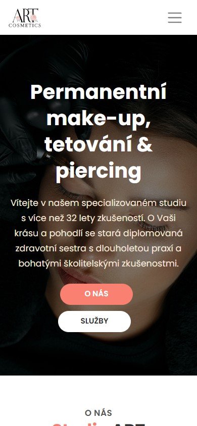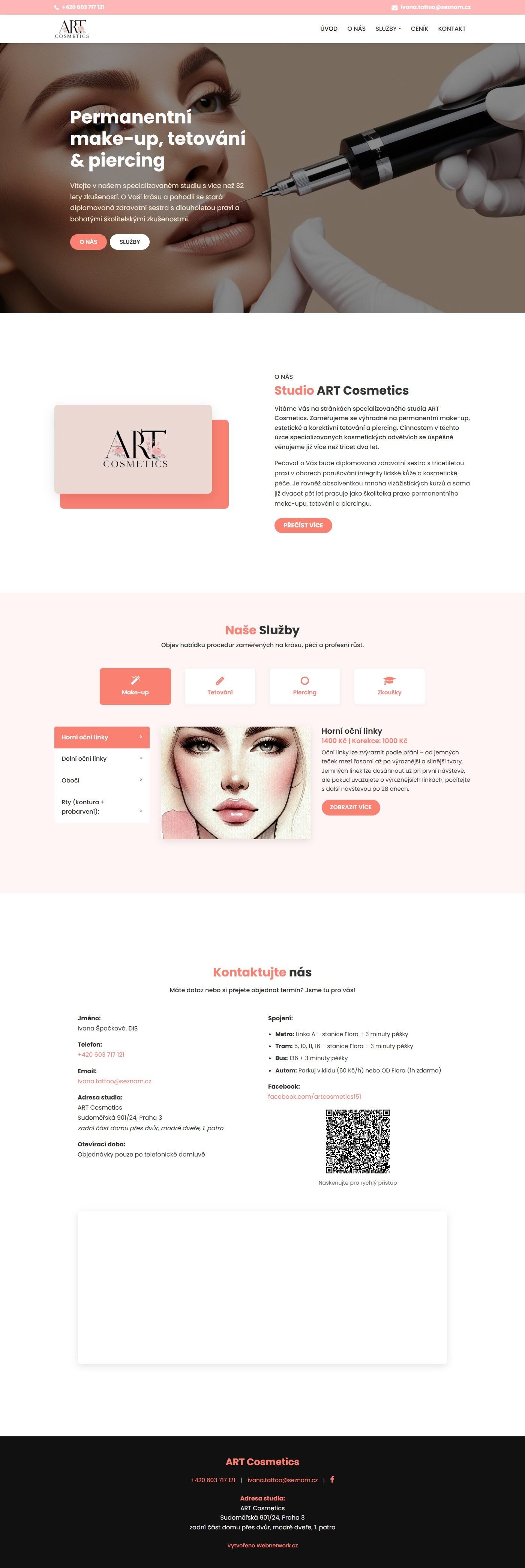 Prezentační web pro studio ART Cosmetics na Praze 3, které se specializuje na permanentní make-up, estetické a korektivní tetování a piercing. Studio vede diplomovaná zdravotní sestra s více než 32 lety praxe v oboru.